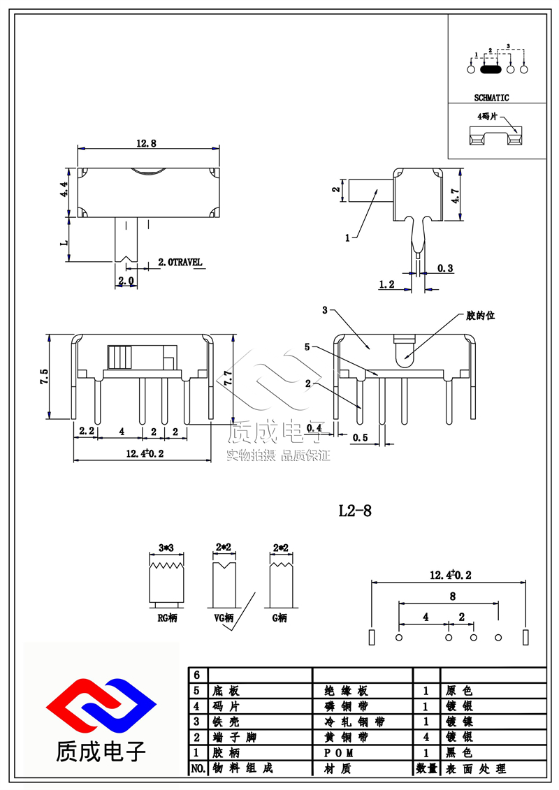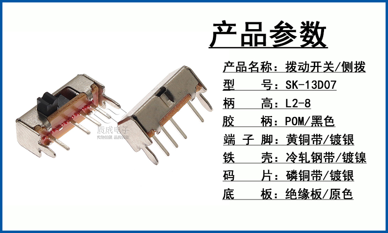 质成拨动开关SK-23D06 侧拨双排三档蓝牙音响滑动开关 柄高L2-8